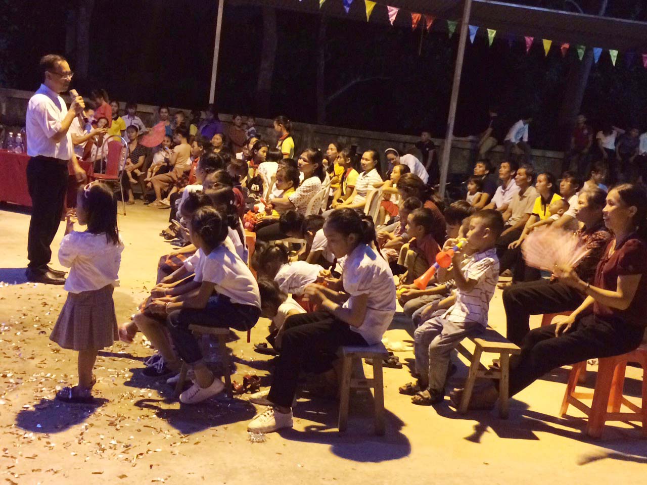 Để khai mở cho đêm hội Trung Thu hôm nay, Cha xứ Đông Yên: Phêrô Nguyễn Văn Tứ đã vui mừng giới thiệu về sự hiện diện của ban Caritas Thanh Hóa trong đêm hôm nay. Cha cũng cảm động nói lên lời tri ân tới Cha Giám Đốc và quý Ban đã ưu ái đến để chia sẻ niềm vui Trung Thu với các em thiếu nhi của giáo xứ.