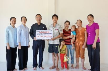 Băn khoan trăn trở trước hoàn cảnh của gia đình em, Caritas Thanh Hóa đã kêu gọi sự giúp đỡ của các ân nhân để xây nhà cho gia đình em. Tạ ơn Chúa, lời kêu gọi đó đã chạm đến những tấm lòng quảng đại của các con các cháu của Ông Bà Cố Cha Phạm Quang Phong (Hoa Kỳ). Sau khi Ông Cố Phê-rô Phạm Quang Ân (thân phụ Cha Phong) qua đời, gia đình con cái muốn xây một căn nhà tình thương tại Việt Nam để tưởng nhớ Ông Cố. Thế là ngày 15/5/2019 ngôi nhà của anh Nhường đã bắt đầu khởi công dưới sự cộng tác nhiệt tình của chị Nguyễn Thị Thơm, cộng tác viên của Caritas Thanh Hóa tại Lương Sơn. Sau hơn hai tháng thi công cùng sự hỗ trợ của bà con lối xóm, ngôi nhà của anh Nhường đã được hoàn tất. Vào ngày 27/7/2019 Caritas Thanh Hóa đã vinh dự thay mặt cho gia đình Ông Bà Cố Phê-rô Phạm Quang Ân trao tặng ngôi nhà tình thương cho gia đình anh Vy Văn Nhường.