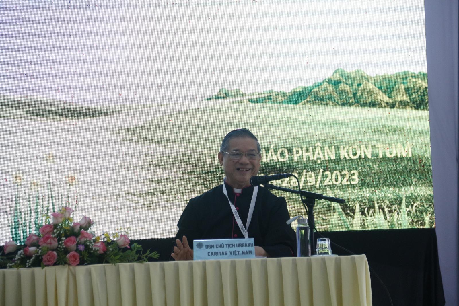 Cuối cùng, Đức cha chủ tich kết thúc Đại Hội Caritas Việt Nam 2023. Đức cha giới thiệu các Tân quý Cha đại diện các Giáo tỉnh Hà Nội, Huế và Sài Gòn cũng như dự kiến Hội nghị Thường niên 2024 sẽ được tổ chức tại Giáo phận Bà Rịa vào cuối tháng 9/2024. Đức cha gởi đến quý Cha Giám đốc, Phó Giám đốc và các Tham dự viên lời cám ơn chân thành, nhất là Đức cha Aloisiô Nguyễn Hùng Vị, Giám mục Giáo phận Kon Tum, Cha Giám đốc Giacôbê Trần Tấn Việt, Giám đốc Caritas Kon Tum, quý Cha Toà Giám mục Kon Tum, Cha Gioan Nguyễn Phước Hậu, Phó xứ Giáo xứ Chánh Toà Kon Tum, cũng các nhân viên, cộng tác viên đã tiếp đón nồng hậu cũng như tận tình giúp đỡ và lo cho những ngày Đại Hội và Ngài tuyên bố bế mạc Đại Hội Caritas Việt Nam 2023.