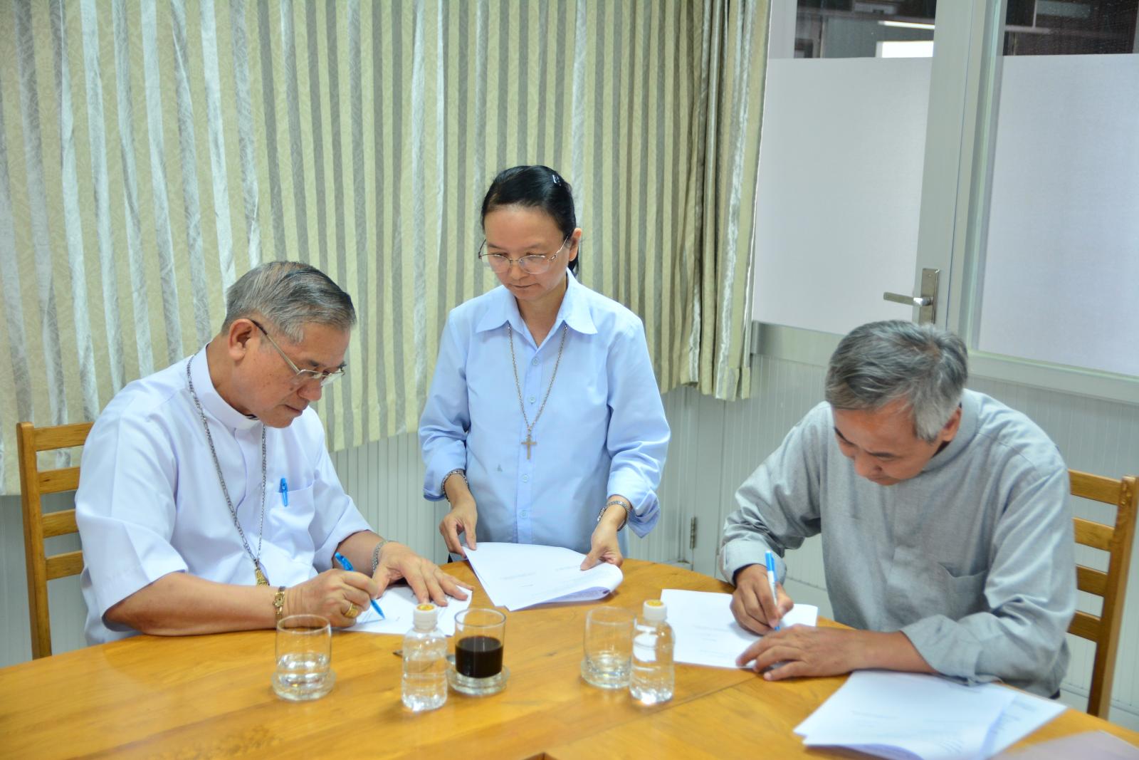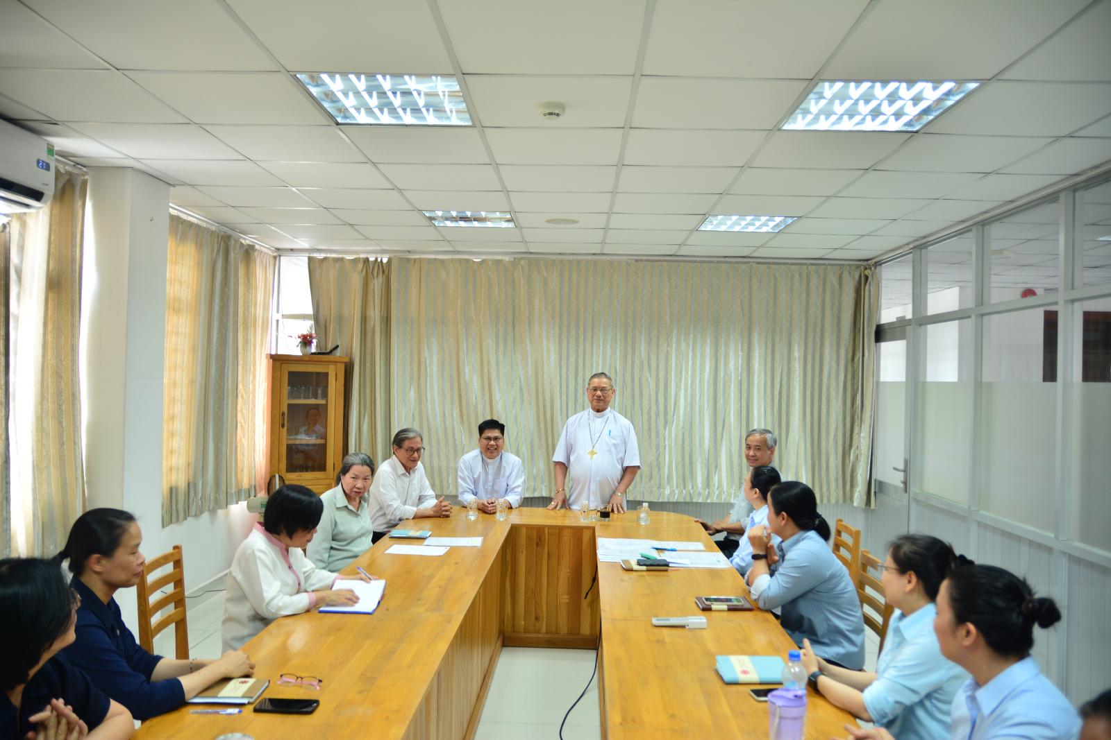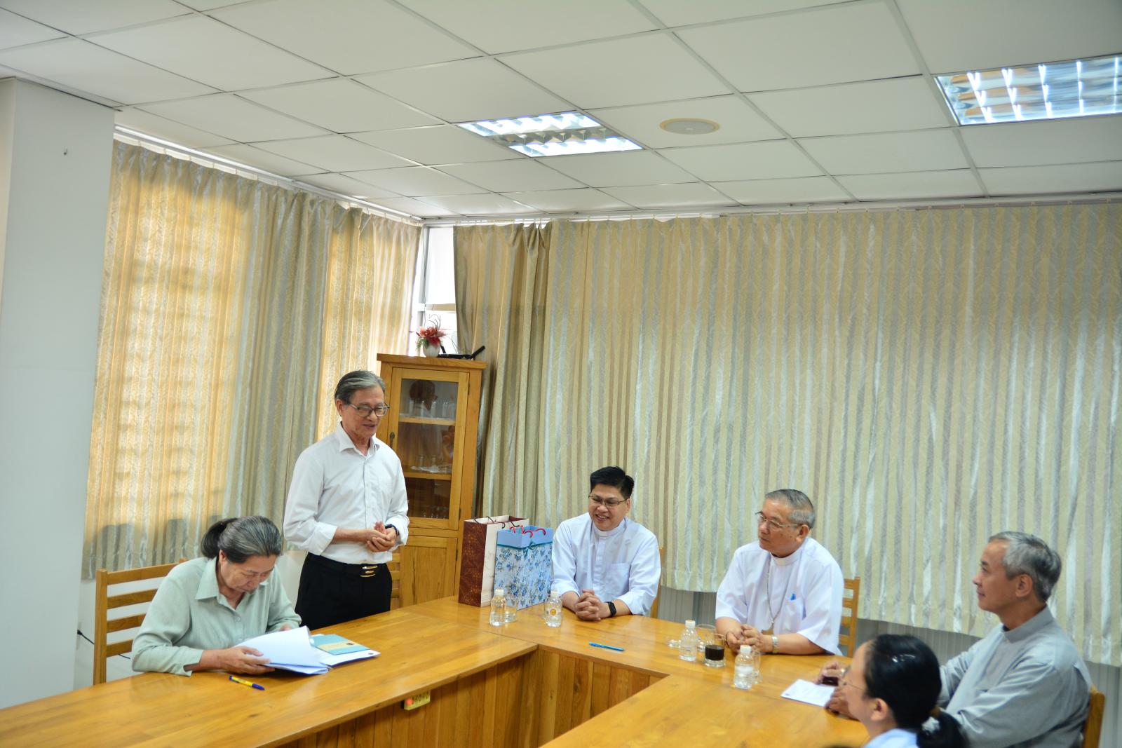 Trước sự hiện diện của cha Tôma Aquinô Nguyễn Trường Tam, Giám tỉnh Dòng Đa Minh Việt Nam; cha Giuse Ngô Sĩ Đình OP, nguyên Giám đốc Caritas Việt Nam; cha Đaminh Nguyễn Hữu Cường OP, Tân Giám đốc Caritas Việt Nam, và nhân viên văn phòng Caritas Việt Nam, Đức cha Tôma đã bày tỏ lời tri ân đến quý cha, đặc biệt cha Giám tỉnh Tôma Aquinô đã hiện diện cũng như gởi quý cha đến phục vụ cho sứ vụ Caritas Việt Nam.
