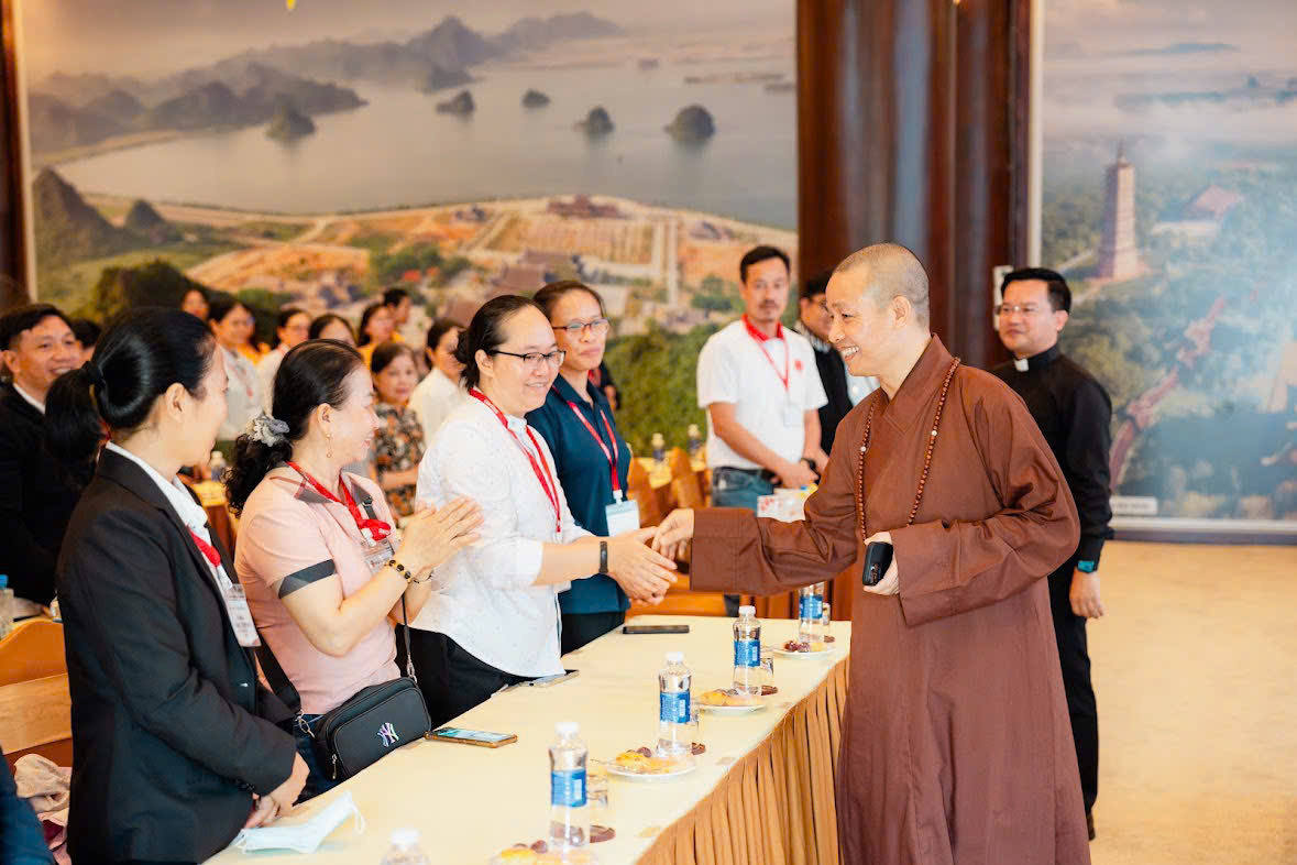 Sáng ngày 9/7/2025, khóa tập huấn khép lại bằng Thánh lễ tạ ơn sốt sắng, tiếp nối là chuyến tham quan vùng đất Sở Kiện – cơ hội để các tham dự viên thưởng lãm vẻ đẹp thiên nhiên và những công trình kỳ công mà Thiên Chúa đã tạo dựng. Điểm nhấn đặc biệt là chuyến viếng thăm chùa Tam Chúc – không chỉ là cuộc gặp gỡ thân tình với anh em tôn giáo bạn, mà còn là cơ hội giao lưu và chia sẻ thao thức chung về giáo dục con người, đặc biệt là giới trẻ ngày nay.