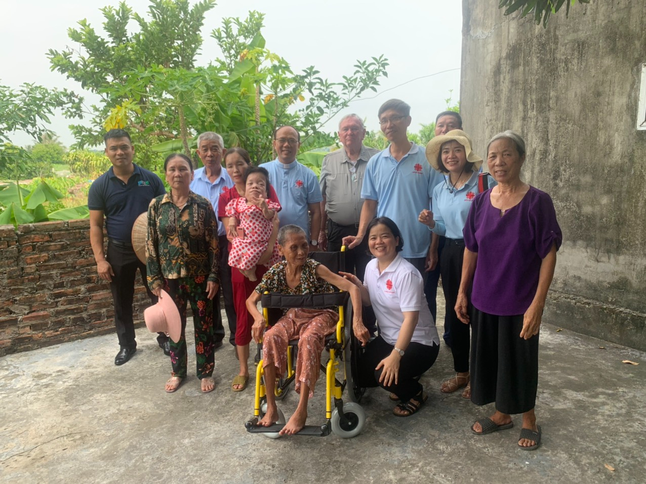 Trong những ngày 24-28/7 vừa qua, Caritas Việt Nam cùng với Hội American Wheelchair Mission đã có chuyến viếng thăm và trao tặng xe lăn cho những người khuyết tật nghèo tại Tổng Giáo phận Hà Nội và Giáo phận Hải Phòng. Trong chuyến viếng thăm lần này, đại diện Hội có sự hiện diện của ông Troy Chesnut, Jeffrey Robertson, và Randy Hale cùng với nữ tu Maria Trần Thị Bích Trâm, đại diện của Caritas Việt Nam, Cha Gioan Baotixita Vũ Văn Kiện, đại diện Caritas Giáo tỉnh Miền Bắc, Cha Gioan. B Nguyễn Văn Quang, giám đốc Caritas TGP. Hà Nội, Cha Phêro Sanen Nguyễn Văn Hiệu, giám đốc Caritas Gp. Hải Phòng, nhân viên và tình nguyện viên.