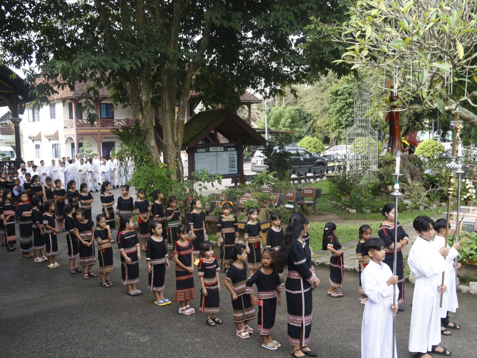Thứ Tư 27/09, Đại Hội Caritas Việt Nam 2023 được khai mạc. Từ sáng sớm khuôn viên TTMV Giáo phận Kon Tum và Nhà Thờ Chánh Toà Kon Tum nhộn nhịp hơn bởi có thêm sự hiện diện đông đảo và thân tình của quý khách. Ngoài Đức cha Tôma Vũ Đình Hiệu, Giám mục Giáo phận Bùi Chu, Chủ tịch UBBAXH - Caritas Việt Nam, còn có sự hiện diện của Đức cha Aloisiô Nguyễn Hùng Vị, Giám mục Giáo phận Kon Tum, Chủ tịch UB Thánh Nhạc; Đức cha Đa minh Hoàng Minh Tiến, Giám mục Giáo phận Hưng Hoá, Chủ tịch UBLBTM; Đức Cha Đa minh Nguyễn Văn Mạnh, Giám Mục Giáo phận Đà Lạt, Chủ tịch UBMVGĐ; Cha Giuse Đỗ Hiệu, Tổng Đại diện Giáo phận Kon Tum; Cha Luy Gonzaga Nguyễn Quang Vinh, Đại diện Giám Mục vùng Gia Lai; quý Cha Quản hạt, quý Cha Quản lý, Thư ký Toà Giám mục Giáo phận Kon Tum; quý Đại diện Dòng tu Nam và Dòng tu Nữ; quý vị khách Chính quyền, Ban Hội đồng Mục vụ Giáo phận Kon Tum cùng quý vị Ân nhân, đặc biệt có sự tham dự của 800 Hội viên Caritas Kon Tum.