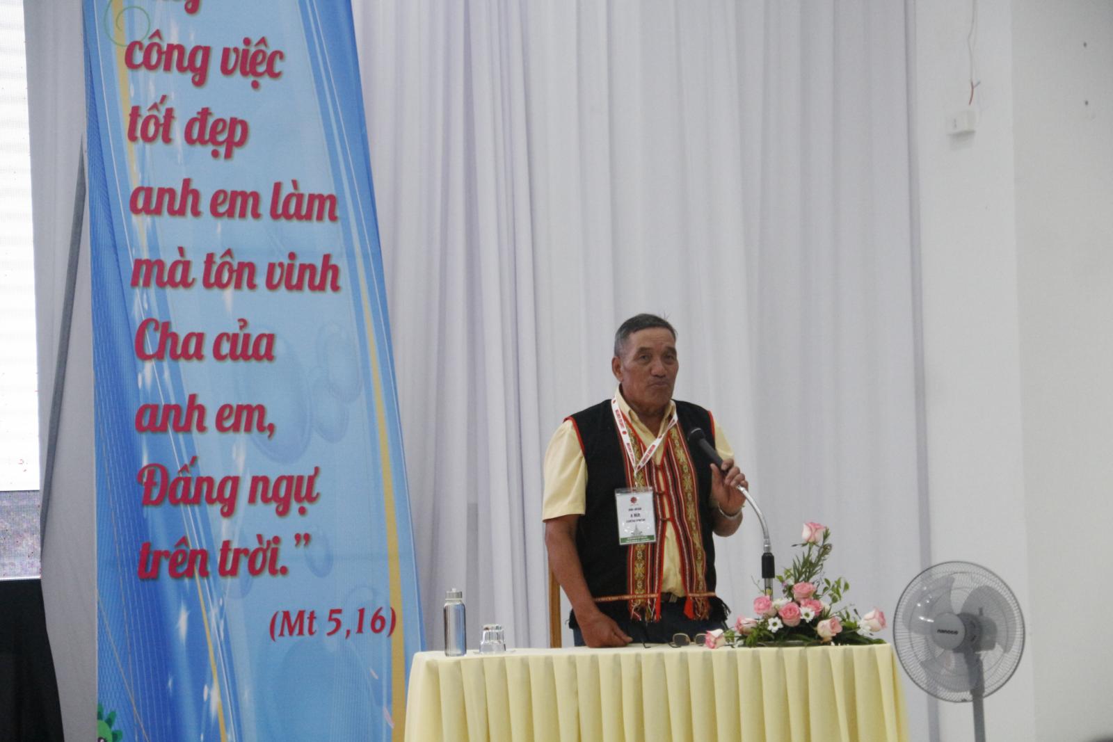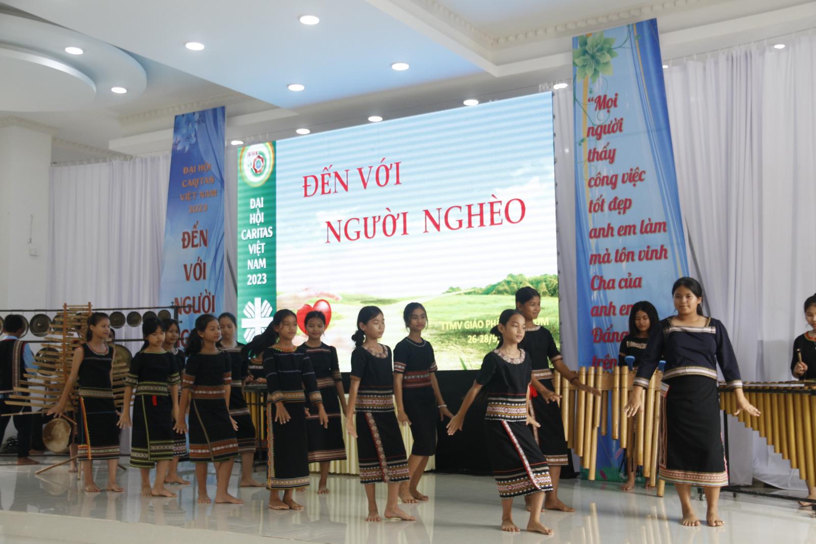 Sau giờ giải lao, Đại Hội dành thời gian còn lại trong ngày lắng nghe “Hiệp Hành cùng Caritas Kon Tum” do Caritas Kon Tum chia sẻ. Đầu tiên, anh Phêrô Trương Xuân Long trình bày tổng quan của vùng đất Kon Tum, nhân sự, hội viên Caritas cũng như các hoạt động bác ái của Caritas Kon Tum đã và đang làm cho những người rất cần được phục vụ. Caritas Kon Tum đã thực hiện rất nhiều dự án, hoạt động bác ái để thăng tiến người dân nơi đây, trong đó việc chăm sóc sức khoẻ cộng đồng, chăm sóc các bệnh nhân phong được chú trọng hơn bởi đây là nhu cầu rất cần thiết. Tiếp đến, hai đại diện chia sẻ thực tế về Caritas Giáo xứ hoạt động (1) chị Catarina Đỗ Thị Mỹ Ly chia sẻ về Caritas Giáo xứ Phương Nghĩa đóng góp cho các hoạt động bác ái như giúp đỡ người già, học bổng cho các em học sinh nghèo, hỗ trợ lương thực cho các giáo xứ khó khăn hơn; (2) Chú Nuê thuộc Giáo xứ Tea Rơ Xá, thuộc làng phong nơi Caritas Kon Tum đến chăm sóc hàng tuần chia sẻ về tinh hình và sự hỗ trợ của Caritas Kon Tum. Chú cho biết hiện nay làng vẫn còn 61 người, họ được hỗ trợ lương thực, thuốc men và rửa vết thương. Hiện nay ở Kon Tum có hơn 200 bệnh nhân phong, Gia Lai 752 bệnh nhân phong. Cha Micae Gia Thu OFM là người rất đắc lực trong việc chăm sóc và lo cho bệnh nhân phong, cũng chia sẻ về các bệnh nhân phong. Cha đang điều hành một bệnh xá để chăm sóc cho các bệnh nhân phong. Sau cùng, Cha Giacôbê Trần Tấn Việt, Giám đốc Caritas Kon Tum đã gởi gắm tâm tình phục vụ cũng như lòng biết ơn qua vũ điệu bài hát và món quà nhỏ đến các Đại biểu.