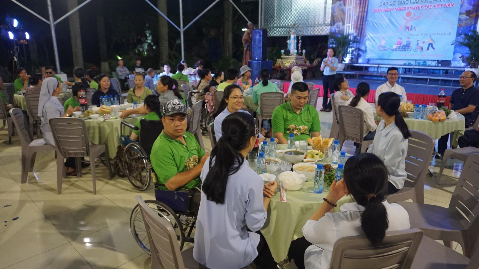 Bên cạnh việc tập huấn, cha Giám đốc Caritas Giáo phận sở tại đã tạo cơ hội cho lớp giao lưu với những đối tượng mà ACE đang phục vụ, là những bệnh nhân HIV (NCH) và người Khuyết tật (NKT) tại Giáo xứ Cựu Viên. Buổi gặp gỡ thật ấm áp khi mọi người cùng chia sẻ bữa cơm huynh đệ do chính anh chị em nấu, được lắng nghe câu chuyện cuộc đời của ACE. Mọi người hiểu thêm và cảm nhận được những khó khăn mà người KT và NCH phải đối diện, đồng thời cũng nhận lãnh được từ ACE những quà tặng tinh thần của lòng tín thác và nghị lực vươn lên.