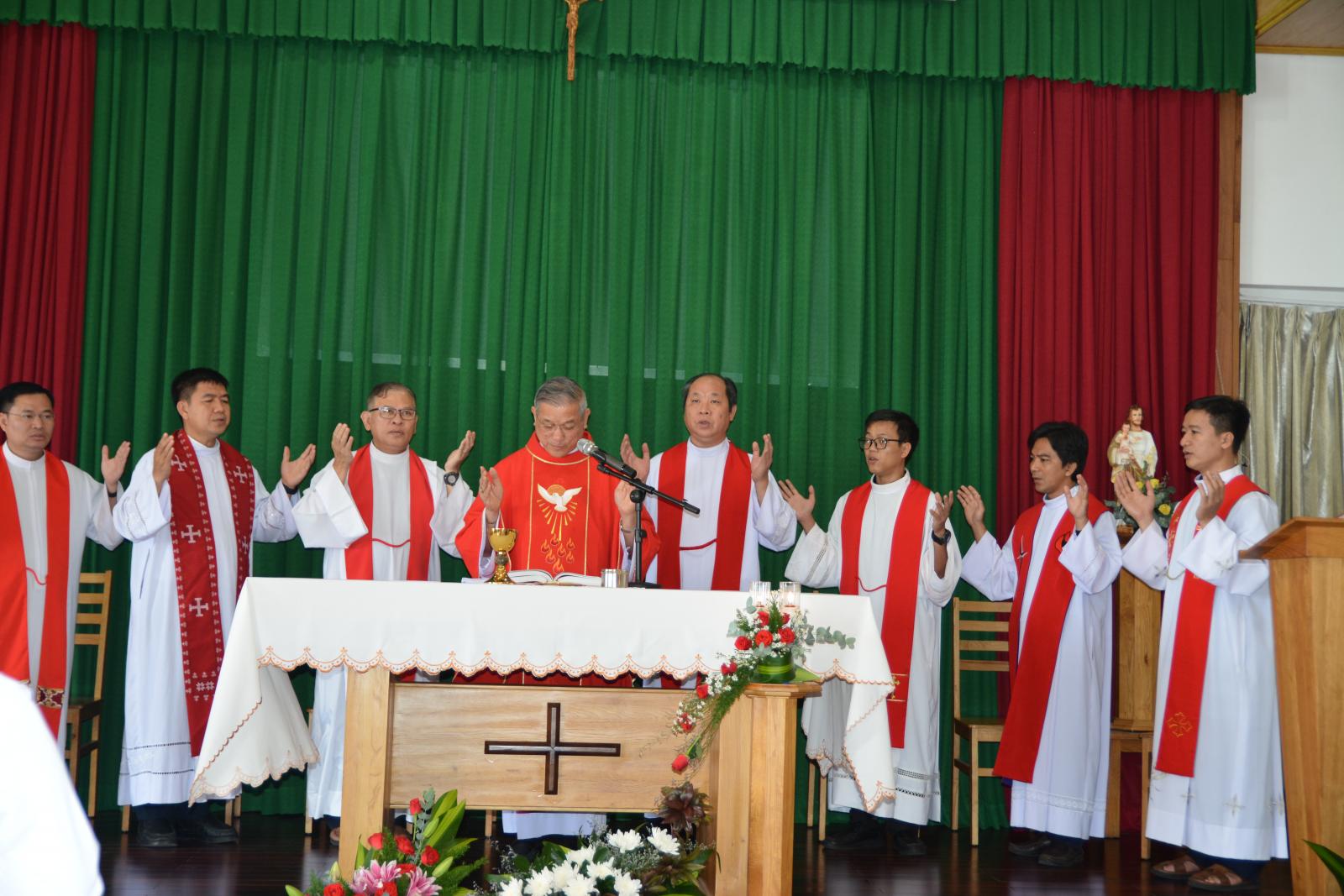 Lúc 10g30, Thánh lễ đồng tế do Đức cha Tôma Vũ Đình Hiệu chủ tế với ý lễ cầu nguyện cho sứ vụ phục vụ yêu thương của Caritas Việt Nam, 27 Caritas Giáo phận cũng như cầu nguyện cho quý ân nhân, những thành viên Caritas Việt Nam đã qua đời.