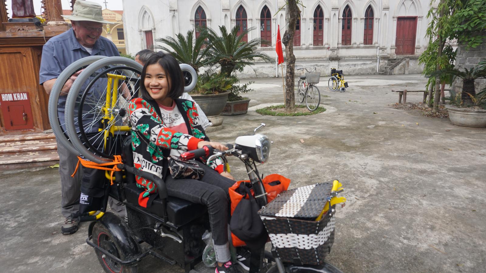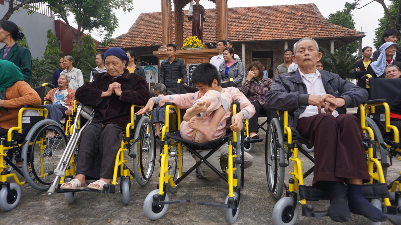 Còn bà Phạm Thị Nhung, sinh năm 1932 tuổi sống với người con gái độc thân, nhận được chiếc xe lăn, bà cảm thấy hạnh phúc và nói lời cảm ơn đến phái đoàn và cha xứ. Vì từ nay bà có được chiếc xe lăn như là “người bạn thân” trong tuổi già để đi đây đó và hơn thế nữa được đi đến nhà thờ gặp Chúa.