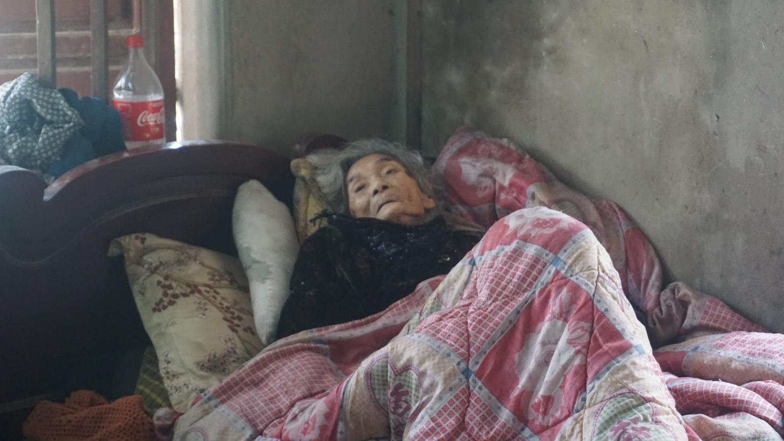 Bà cụ Nguyễn Thị Nguyêt, 104 tuổi, ở với con gái cũng đã lớn tuổi (Lác nội, Thanh Hương Thanh Hà Nam) Tuy đã bị liệt giường 4 tháng nhưng bà vãn minh mẫn.