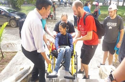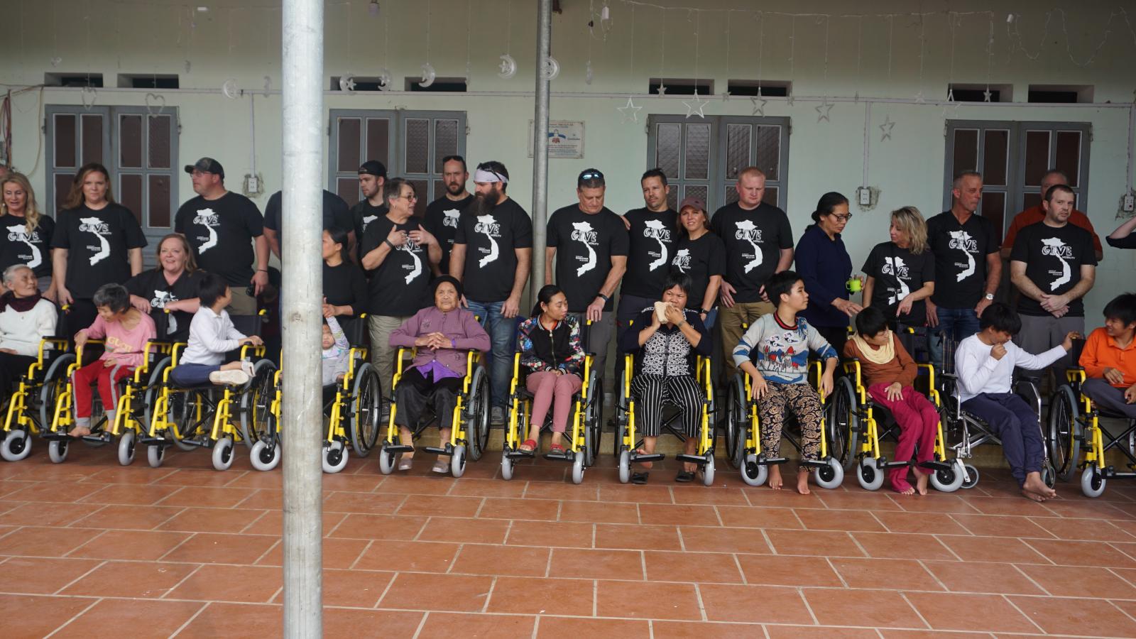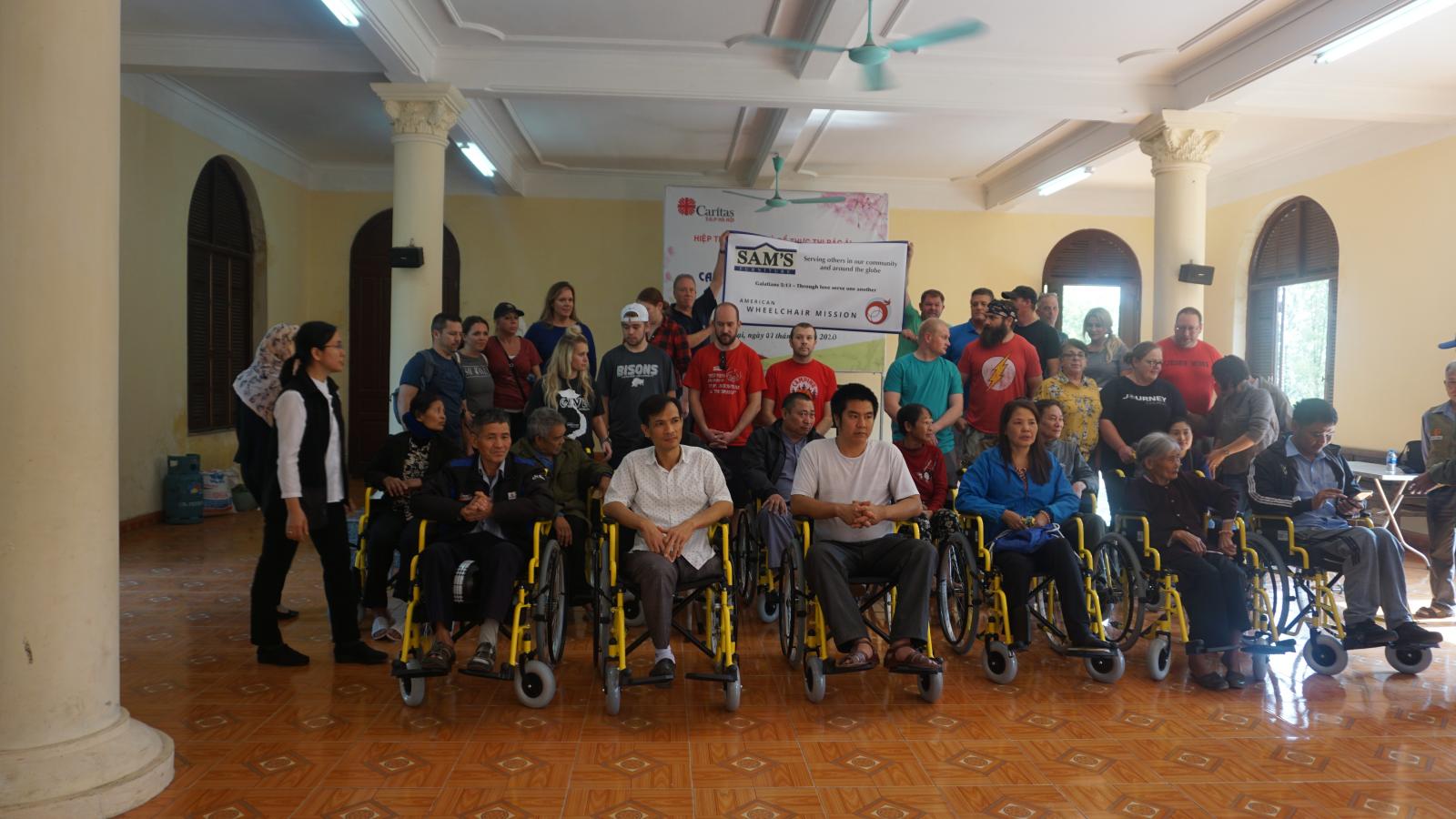Nt. Têrêsa Nguyễn Thị Hoàng Mai, Nt. Maria Nguyễn Thị Quỳnh Tâm thuộc Caritas Việt Nam, Nt. Maria Bùi Thị Huệ Caritas Hà Nội đã đồng hành với các thành viên của Hội AWM: ông Christopher Joseph Lewis, Chủ tịch Hội AWM, Troy Allan Chesnut, Randy Vincent Hale, Jeffrey Jay Robertson và Cô Tatiana Katterine Lewis cùng 18 vị khách đến từ bang Arkansas. Phái đoàn đã đến thăm một số gia đình có người khuyết tật nặng, trung tâm khuyết tật, một số giáo xứ để gởi trao những chiếc xe lăn cho người khuyết tật với mong muốn làm vơi bớt gánh nặng cho những người thân chăm sóc họ, thay đổi cuộc sống của người khuyết tật, giúp người khuyết tật có thể tự đi lại, và làm một số việc nhẹ.