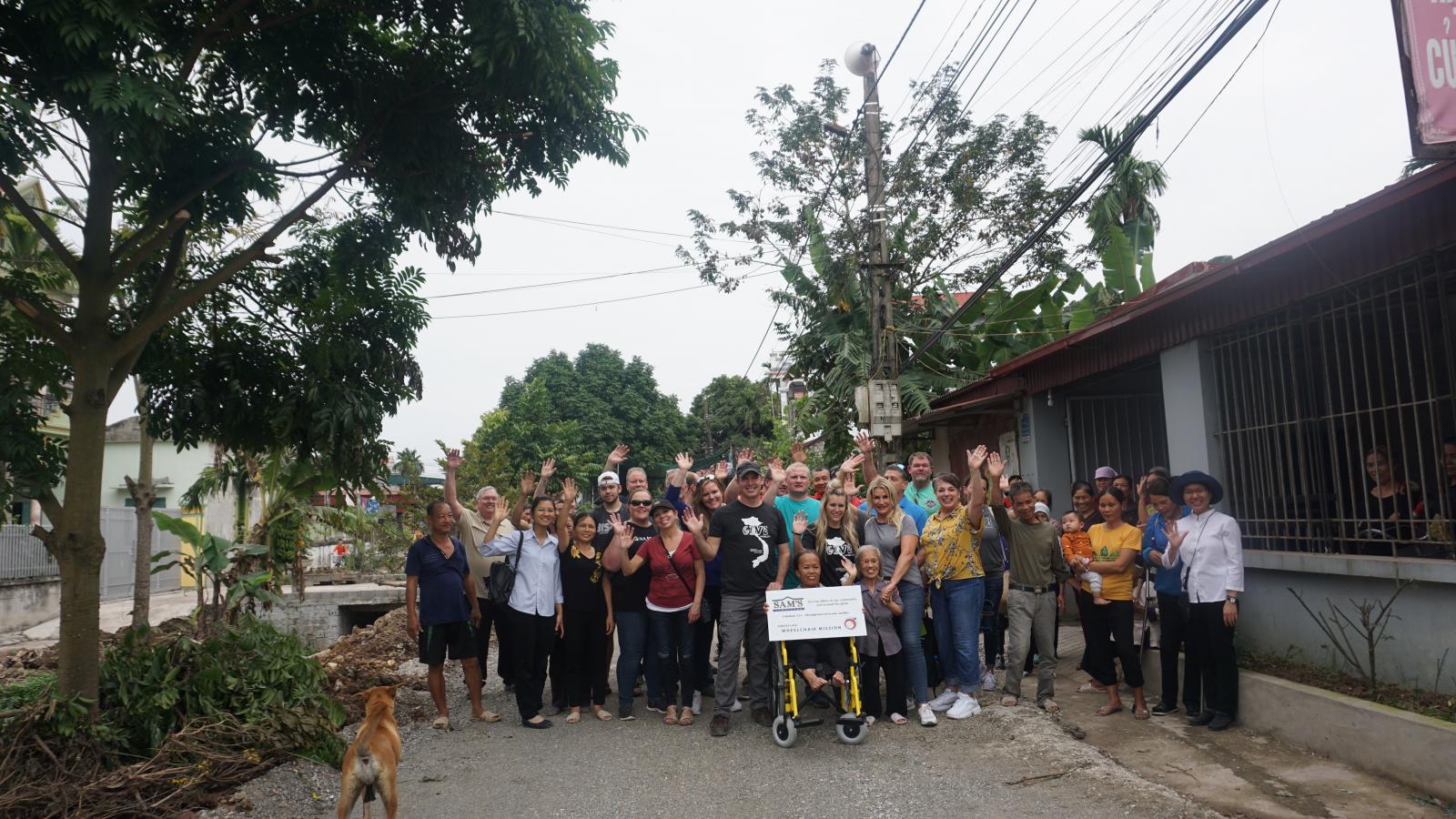 Sau đó đoàn đã đến trao 30 chiếc xe lăn cho những người khuyết tật ở huyện Mỹ Đức nơi đây có những người bị cụt chân và có hoàn cảnh neo đơn, và gia cảnh rất khó khăn…