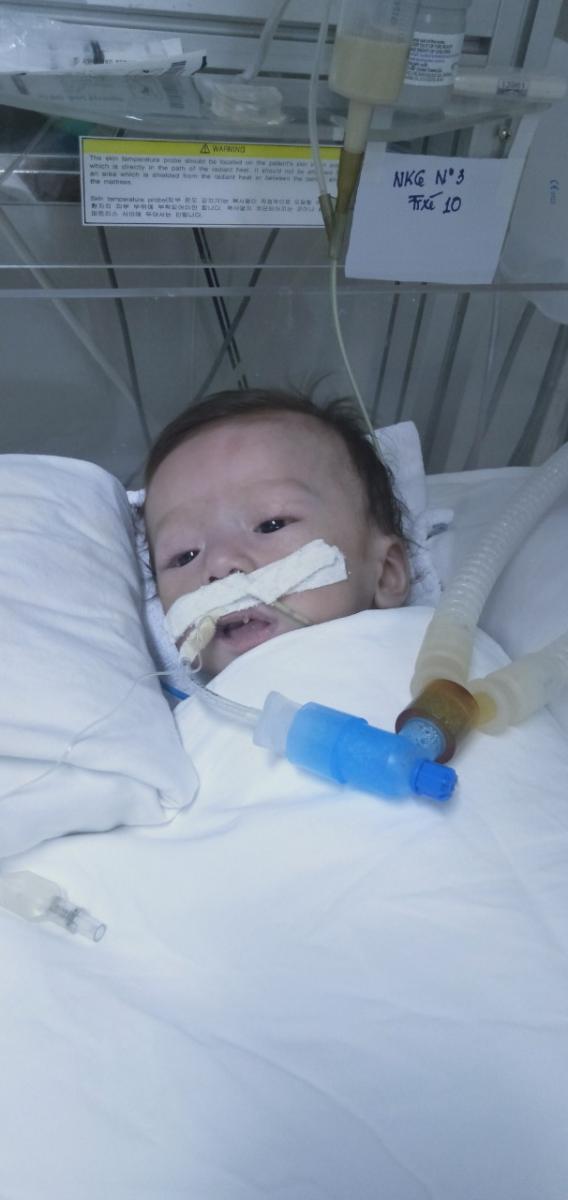 Cháu Trần Ngọc Tú Nữ, 1 tuổi, quê ở Ninh Thuận. Hoàn cảnh gia đình cháu rất khó khăn, ba thì không có việc làm ổn định, ai thuê gì thì làm, có ngày không ai thuê thì cũng không kiếm đủ tiền lo cho gia đình những sinh hoạt hàng ngày. Mẹ cháu thì phải lo cho cháu bệnh tật hiểm nghèo. Chúng tôi nhìn cháu ngủ an lành sau những ngày mệt nhọc vì trải qua phẫu thuật, trải qua những cơn đau mà đối với một cơ thể quá bé nhỏ phải chịu đựng. Cháu đang được các bác sĩ điều trị tại khoa Nhi vì những vết thương của cháu bị nhiễm trùng, và phải được chăm sóc cẩn thận hơn.