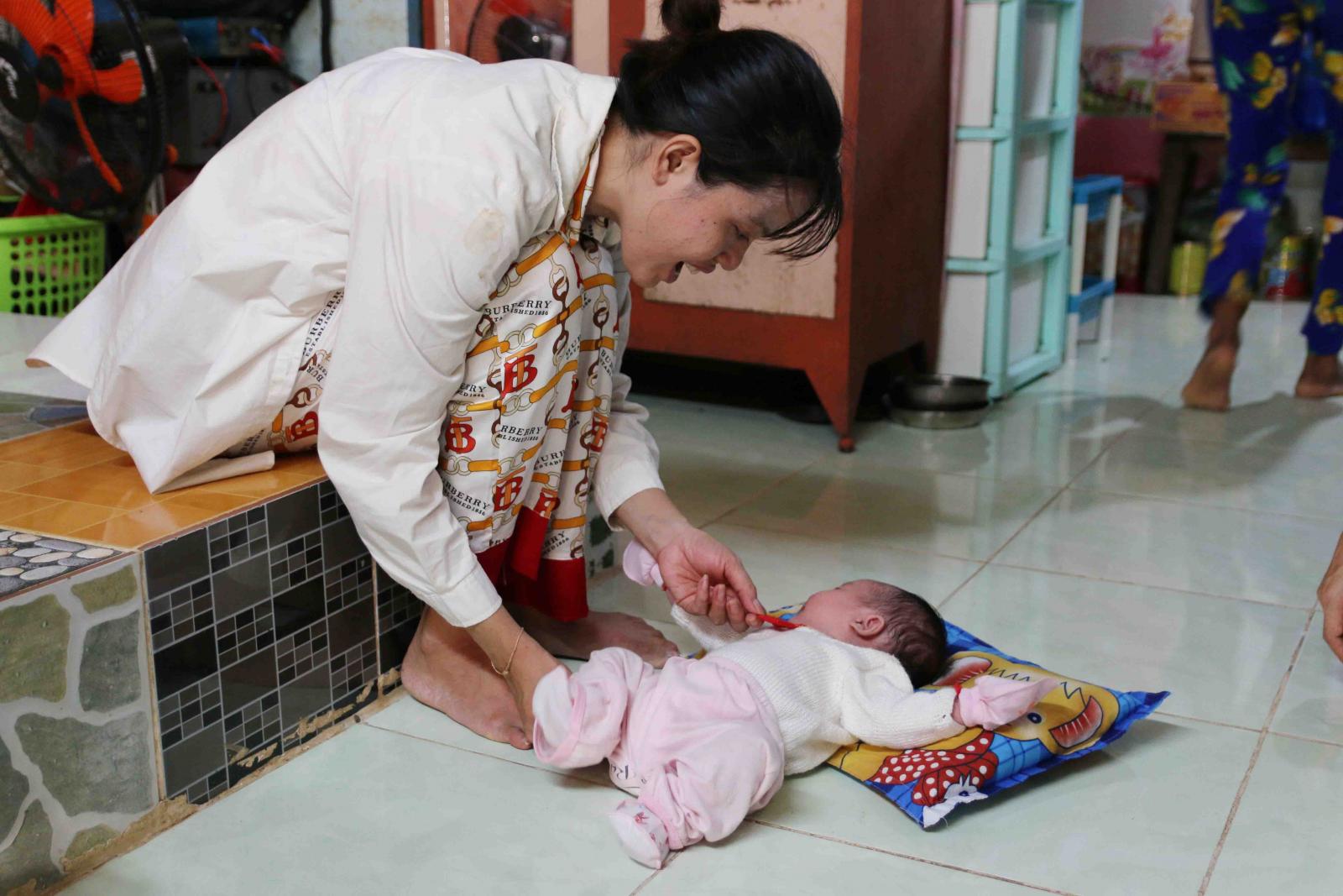 Chị Mai và con gái 19 ngày tuổi, bốn mẹ con chị sống chung trong căn nhà của bố mẹ chị.