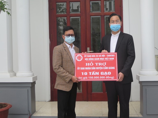 Trong tâm tình hướng về Hải Dương cùng chung tay phòng chống đại dịch Covid-19, ngày 17/02, Caritas Việt Nam trao tặng quà cứu trợ cho những người khó khăn tại huyện Cẩm Giàng, một trong 6 ổ dịch của tỉnh Hải Dương.