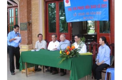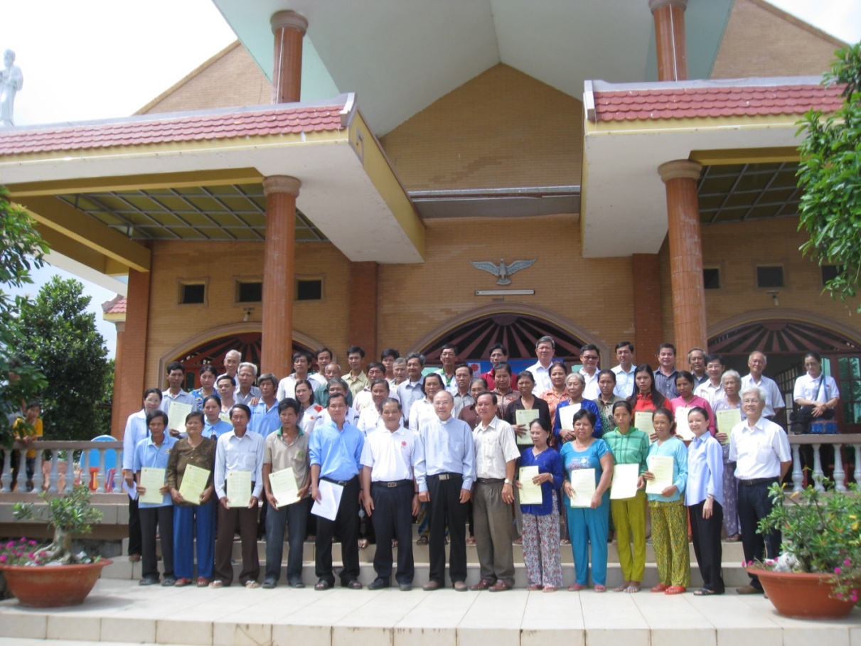 Việc trao giấy chủ quyền nhà được chia làm 4 đợt, mỗi đợt là 10 hộ. Đợt 1 do Cha Giám đốc Caritas Việt Nam trao; đợt 2 do cha Giám đốc Caritas Mỹ Tho trao; Đợt 3 do ông chủ tịch xã trao và đợt 4 do Cha Phó Giám đốc Caritas Mỹ Tho trao.