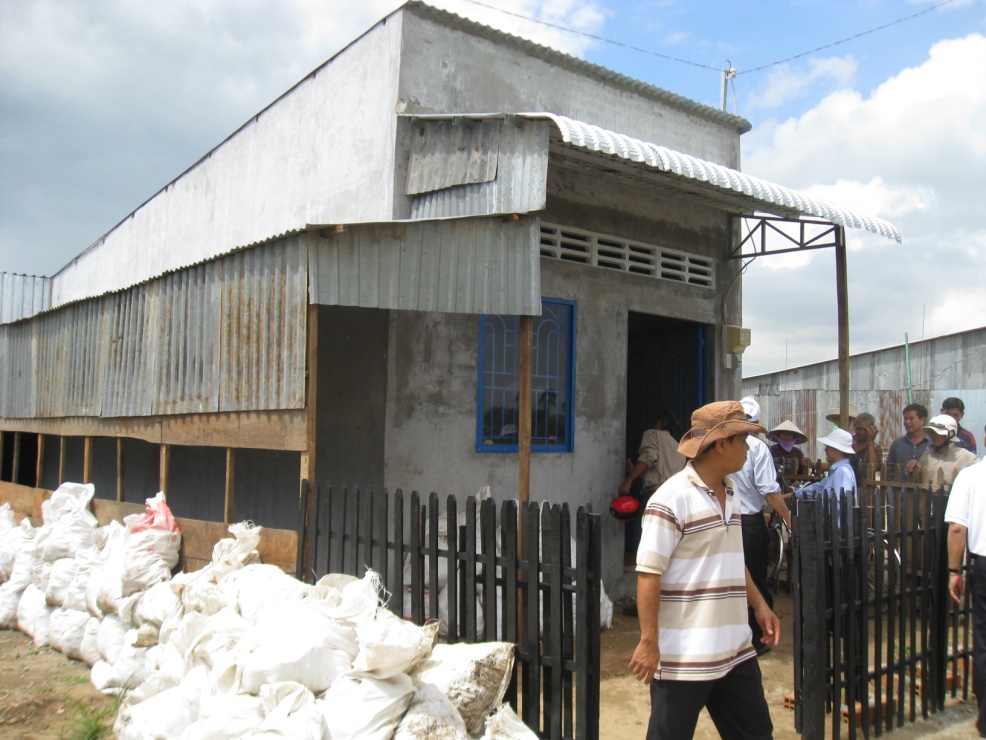Sau khi kết thúc lễ trao nhà, tất cả đoàn cùng đi với bà con đi thăm thực tế 40 căn nhà. Diện tích nền được cấp là 5,5m x 20m. Diện tích sàn được phép xây dựng là 5,5m x 16m. Quy cách của một căn nhà được cấp theo dự án là 4m x 12m với giá là 34 triệu đồng và địa phương đóng góp 3 triệu đồng.