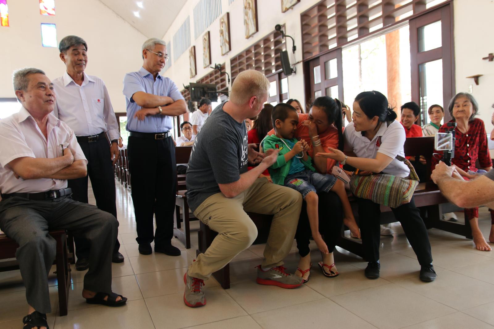 Đồng hành cùng phái đoàn có Nữ tu Maria Trần Thị Bích Trâm và Nt Maria Nguyễn Thị Quỳnh Tâm, nhân viên Caritas Việt Nam cùng quý cha đặc trách và nhân viên Caritas các Giáo Phận; Ông Christopher Joseph Lewis, Chủ tịch Hội AWM, Ricado Guzman, Giám đốc Điều hành, Troy Allan Chesnut, Randy Vincent Hale, Jeffrey Jay Robertson và cùng 11 quý vị ân nhân đến từ bang Arkansas, đã đến thăm những người khuyết tật và trao tặng những chiếc xe lăn cho họ.