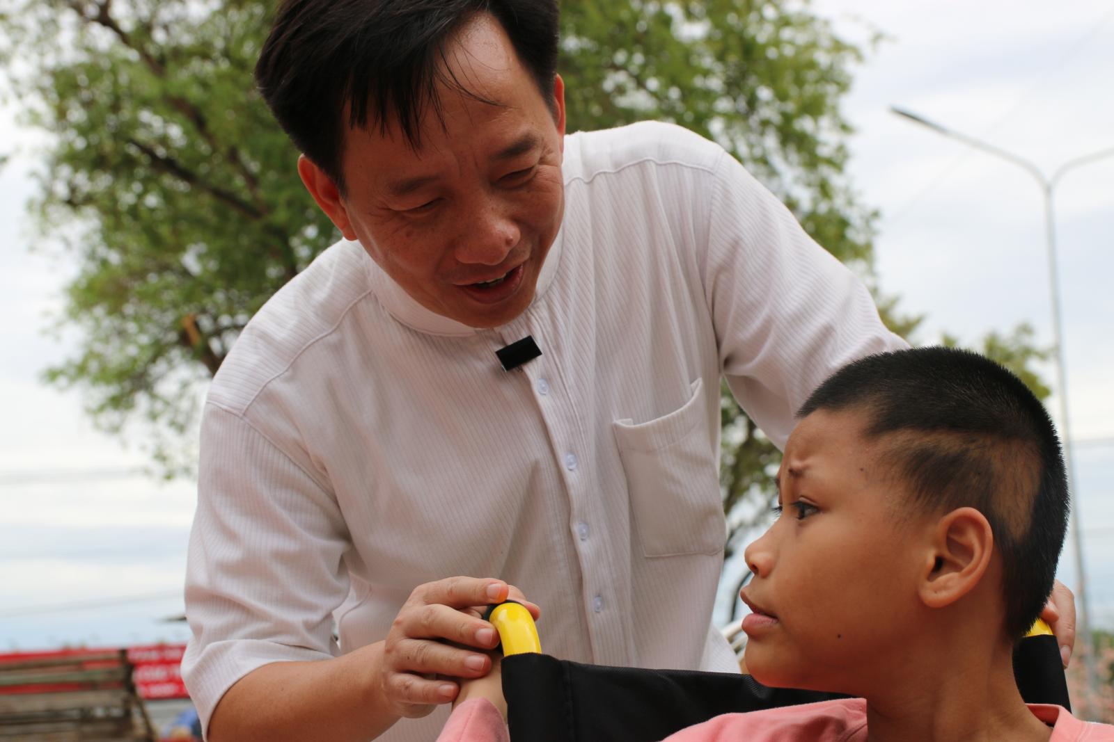 Ngoài những địa điểm tập trung tại các giáo Xứ, phái đoàn đi thăm những gia đình có người thân bị khuyết tật nặng để trao tặng những chiếc xe lăn với mong muốn có thể giúp họ di chuyển được và cũng làm vơi bớt gánh nặng cho những người thân đang chăm sóc họ.