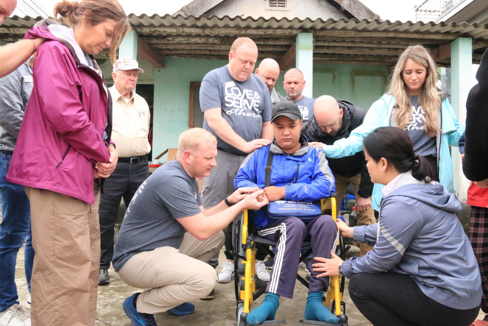 Từ ngày 17 đến 22/3/2025, Caritas Việt Nam đã đồng hành cùng Hội American Wheelchair Mission và Hội Sam’s Furniture tổ chức chuyến thăm và trao tặng xe lăn cho những người khuyết tật nghèo tại các vùng thuộc Giáo phận Đà Nẵng và Tổng Giáo phận Huế. Đoàn đại diện gồm ông Ricardo Guzman - Giám đốc điều hành Hội American Wheelchair Mission, ông Joe Donaldson - Giám đốc Hội Sam’s Furniture cùng với 12 vị khách từ Mỹ, Nữ tu Maria Trần Thị Bích Trâm, Nữ tu Cecilia Võ Thị Loan Anh thuộc Caritas Việt Nam, Cha Anrê Lê Minh Phú - Giám đốc Caritas Huế, Cha Simon Nguyễn Can Trường - Giám đốc Caritas Đà Nẵng, cùng các nhân viên và tình nguyện viên.