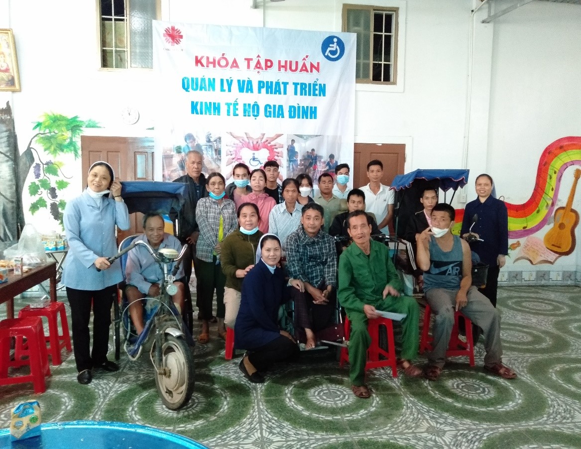 Với mong muốn giúp đỡ cho các hoàn cảnh gia đình NKT vận dụng một vài kiến thức và thực hành cụ thể để có thêm thu nhập, vào ngày 01–02 tháng 05 năm 2022 vừa qua, Tiểu ban hỗ trợ NKT - Caritas Vinh với sự hỗ trợ của Caritas Việt Nam đã tổ chức Khóa tập huấn Quản lý và Phát triển kinh tế hộ gia đình cho NKT đang còn khả năng lao động và gia đình của họ.