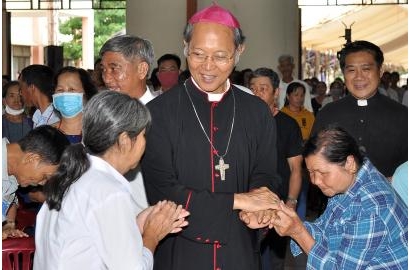 Hướng về anh chị em đau khổ (nghèo khó) ngài nói: “Có thể nói cuộc đời mỗi chúng ta đang cùng tham dự vào những đau khổ như các thánh Tử đạo Việt Nam. Chúa biết rằng chúng ta còn nhiều vất vả, khó khăn; Chúa cũng biết rằng anh chị em có nhiều hy sinh trong cuộc sống. Chắc chắn nhiều anh chị em ở đây cái ăn chưa đủ no, áo ấm cũng không đủ mặc, tương lai thì bấp bênh, chưa biết ngày mai sẽ ra sao… Nhưng cuộc sống có nhiều khó khăn thử thách như thế, anh chị em như thể đang tham gia vào các vết thương, cuộc tử nạn như các thánh Tử đạo đã trải qua; anh chị em đang được thông phần với Chúa trong cuộc tử nạn và phục sinh”.