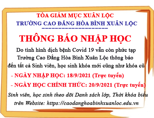 Tiếng trống khai trường được vang lên rộn rã từ tay Cha Hiệu trưởng, mời gọi các Học sinh sinh viên trường Cao đẳng Hòa Bình Xuân Lộc bước vào năm học mới 2021-2022. Mọi người hiện diện cất cao lời ca, phó dâng nhà trường trong sự quan phòng của Chúa, qua lời chuyển cầu của thánh cả Giuse quan thầy.
