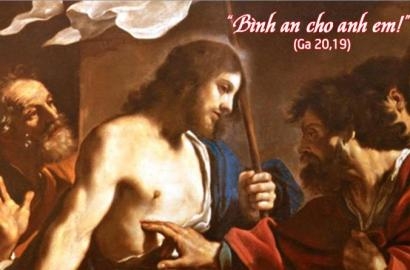 Chúa Phục Sinh cho các tông đồ xem những thương tích cuộc khổ nạn nay đã thành sẹo như mời gọi các ngài chiêm ngắm chính nguồn mạch của Lòng Thương Xót không bao giờ cạn vơi.