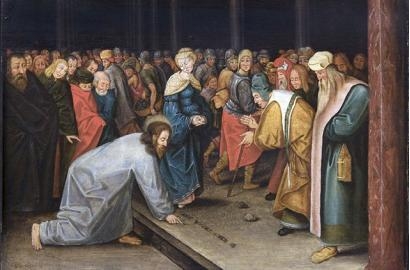 Sau một đêm nghỉ ngơi ở khách sạn ngàn sao, sáng sớm Chúa Giêsu trở lại đền thờ. “Toàn dân đến với Người. Người ngồi xuống giảng dạy cho họ”. Bỗng có tiếng xôn xao. Một nhóm Kinh sư và Pharisiêu đang lôi một người đàn bà tới, đám đông dạt ra, họ xô chị ra đứng trước mặt Chúa Giêsu. Họ bất ngờ lập tòa án ngoài trời và mời Chúa Giêsu làm quan tòa. Học đọc cáo trạng: “Thưa Thầy, người đàn bà này bị bắt quả tang đang ngoại tình. Trong sách Luật, ông Môsê truyền cho chúng tôi phải ném đá hạng đàn bà đó. Còn Thầy, Thầy nghĩ sao?”.
