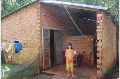 Căn nhà của mẹ con bé Loan là một ngôi nhà tình thương, được địa phương nơi đây xây lên và trao tặng làm chỗ che mưa che nắng. Khi hỏi thăm hoàn cảnh, chúng tôi mới biết: Sau khi bé Loan chào đời được một năm, cha của em đã bỏ nhà ra đi, để lại người vợ nghèo khổ, đáng thương với một đàn con nheo nhóc. Bé Loan là con út trong nhà, trước em là ba người anh trai và một chị gái.