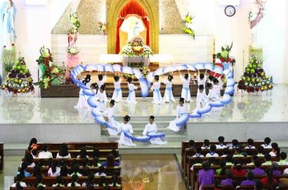 Mỗi dịp tháng năm về, các Nhà thờ rộn rã mùa dâng hoa kính Đức Mẹ. Phụng vụ Mùa Hoa tưng bừng nhộn nhịp với nhiều thể loại phong phú Rước hoa và Dâng hoa tuỳ mỗi tập quán mỗi đặc trưng văn hoá địa phương.