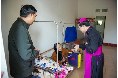 ĐỨC CHA GIÁO PHẬN THÁI BÌNH MỪNG XUÂN MỚI CÙNG BỆNH NHÂN PHONG VĂN MÔN