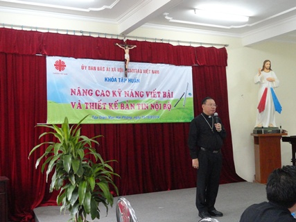 Đức Cha Giuse Vũ Văn Thiên – Giám mục giáo phận Hải Phòng đến dự khai giảng khóa Tập huấn “Nâng Cao Kỹ Năng Viết Bài Và Thiết Kế Bản Tin Nội Bộ” vào lúc 7 giờ 30’ ngày 16/09/2014 tại Toà Giám Mục Hải Phòng.