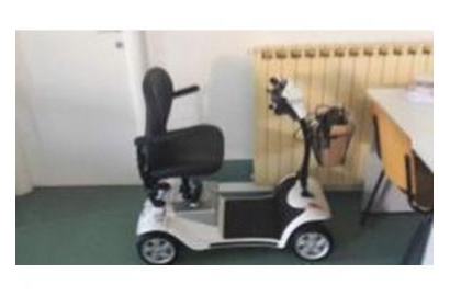Đó là một chiếc xe điện dành cho người khuyết tật để giúp họ có thể tự di chuyển. Từ lâu 2 ông bà bị bó buộc trong căn hộ của họ vì tiểu đường và cao huyết áp. Người phụ nữ mới bị cắt 1 chân.