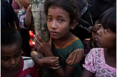 Nul Hayada, 10 tuổi, người Rohingya từ Myanmar mới đến, đứng xếp hàng chờ đăng ký ở Teknaf, Bangladesh. Ảnh: Lauren de Cicca/Caritas