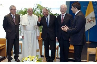 ĐTC xác quyết sự sẵn sàng của Tòa Thánh, của Giáo Hội Công Giáo, và qua Ủy ban GM Liên hiệp Âu Châu, Comece, đối thoại minh bạch và phong phú với các tổ chức Âu Châu. Ngài cũng nói đến nhiều bất công và bách hại mà các nhóm tôn giáo thiểu số, nhất là các tín hữu Kitô đang phải chịu tại nhiều nơi trên thế giới; ngài nhắc đến các cộng đoàn và những cá nhân bị bạo lực dã man, bị trục xuất khỏi gia cư và quê hương, bị bán như những nô lệ, bị giết, bị chặt đầu, bị đóng đanh và thiêu sống, trong sự thinh lặng ô nhục và đồng lõa của bao nhiêu người.Ngài nhận xét rằng: ”Khẩu hiệu của Liên hiệp Âu Châu 'hiệp nhất trong sự khác biệt', không có nghĩa là đồng nhất về chính trị, kinh tế, văn hóa hay tư tưởng, nhưng chỉ rõ một gia đình các dân tộc, với những tổ chức của Liên Hiệp, biết liên kết lý tưởng hiệp nhất với sự khác biệt của mỗi người, đề cao giá trị của mỗi truyền thống, sự phong phú của các lịch sử và căn cội, giải thoát mình khỏi bao nhiêu lèo lái và ghét bỏ. Đặt con người ở trung tâm trước tiên có nghĩa là để cho con người tự do biểu lộ khuôn mặt và óc sáng tạo của mình trên bình diện cá nhân và dân tộc. Các nguyên tắc liên đới và phụ đới, hiện diện trong việc hình thành Âu Châu giúp chúng ta trong chiều hướng này”.