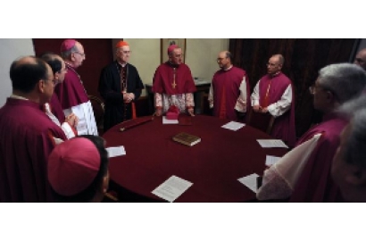 Sáng 04/03/2013, các vị hồng y họp kín tại phòng công nghị.