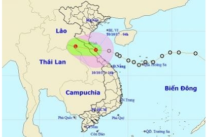 Đến 16h ngày 10-10, vị trí trung tâm vùng áp thấp ở vào khoảng 18,3 độ Vĩ Bắc; 104,1 độ Kinh Đông. Sức gió mạnh nhất ở trung tâm vùng áp thấp giảm xuống dưới cấp 6 (dưới 40km/h).
