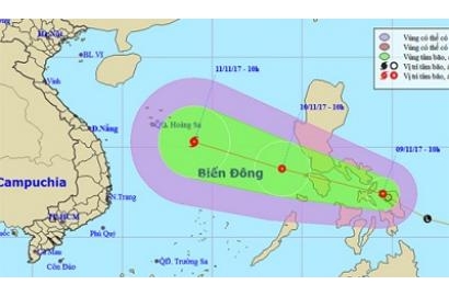 Trung tâm dự báo khí tượng thủy văn Trung ương cho biết, 10h ngày 9/11 tâm áp thấp nhiệt đới trên vùng bờ biển phía đông miền Trung Philippines, sức gió mạnh nhất 50 km/h (cấp 6).