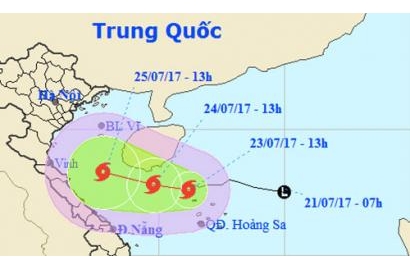 Hoàn lưu bão sẽ gây mưa to cho các tỉnh từ Thanh Hóa đến Thừa Thiên Huế từ ngày 25/7. Trên biển, khu vực giữa và nam Biển Đông (bao gồm cả vùng biển quần đảo Trường Sa), vùng biển từ Ninh Thuận đến Cà Mau có mưa rào và giông.