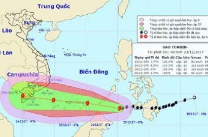 TTO - Khoảng đêm nay 23-12, bão số 16 - tên quốc tế là Tembin - sẽ vượt qua phía Nam đảo Palawan (Philippines) và đi vào Biển Đông.