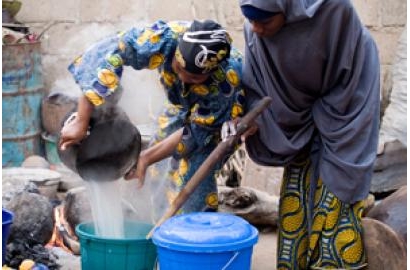 Caritas strives for better economic and social conditions at every migrant's home country, so that emigration will not be the only option left. Here women in Nigeria benefit from a constant supply of water from rainwater catchment tank provided by CAFOD partner. Credit: CAFOD