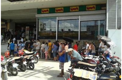 Người dân lo sợ bão Hagupit đang đến gần xếp hàng mua đồ dự trữ bên ngoài cửa hàng tạp hóa ở Tacloban (Ảnh: Ronald Reyes)
