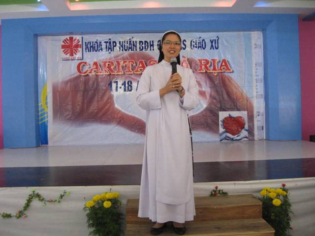 Buổi chiều, sau khi Cha Vinh Sơn Trần Văn Khải - Giám Đốc Caritas Giáo phận trình bày về “Linh đạo Caritas”, Nữ tu Thu Hà triển khai đề tài “Hỗ trợ người khuyết tật hòa nhập cộng đồng”.