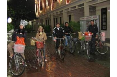 22 giờ, đoàn chúng tôi bắt đầu xuất phát từ văn phòng Caritas, đi dọc đường Lê Đại Hành. Người đầu tiên nhận quà là một người phụ nữ khoảng ngoài năm mươi tuổi đang tìm trong những đống rác ngoài phố những thứ sót lại mà còn dùng được, dáng người gầy khắc khổ của cô khiến chúng tôi không khỏi nghẹn ngào. Cô cười hạnh phúc khi nhận được món quà từ Cha, cô cám ơn và nói “đêm nay thật là đêm may mắn đối với tôi, tuy không kiếm được nhiều ở những đống rác này, nhưng tôi lại nhận được quà. Tôi hạnh phúc lắm, vậy là có bánh chưng mang về cho các con ăn tết rồi”.