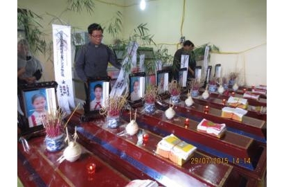 Quý Cha và đoàn đã đến thắp nén hương phân ưu, chia sẻ những món quà cảm thông với nỗi mất mát tột cùng của các gia đình bị nạn. Sự đau đớn tột cùng này không thể nguôi ngoai một sớm một chiều, khi các nạn nhân gồm ba thế hệ trong một gia đình đã ra đi mà phần đông ở tuổi còn quá trẻ. Nhìn tám chiếc quan tài đặt cạnh nhau mới cảm được nỗi đau vô tận của những người còn ở lại trong cuộc ly biệt này. Ai cũng nghẹn lại không nói lên lời, những giọt nước mắt vẫn đang lăn trên gò má không chỉ của những người thân mà cả những người đang hiện diện trong khung cảnh đại tang này.