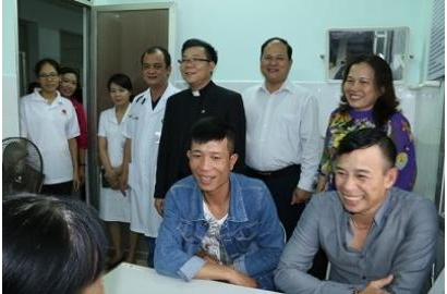 Trong buổi thăm viếng, Cha giám đốc cũng gặp gỡ, động viên, chia sẻ các bệnh nhân đang điều trị tại Khoa Bệnh nhiệt đới. Chị Nguyễn Thị H (35 tuổi) xúc động nói: “Khi mới phát hiện ra bệnh, con đã rất hoang mang, lo lắng, con đã nghĩ sự sống của mình không còn bao lâu nữa, các con còn quá nhỏ, không biết ai sẽ chăm sóc cho chúng, rồi sợ mình ở cùng sẽ lây sang cho các con v.v. Bao nỗi lo cứ quanh quẩn trong đầu, lúc nào cũng thấy buồn tủi. May mắn nhận được sự tư vấn hỗ trợ của các thành viên trong Nhóm tư vấn, đã giải đáp các câu hỏi của con, giải tỏa cho con hết mọi băn khoăn. Và cứ thứ hai, thư tư, thứ sáu lại nhận được cháo dinh dưỡng của các bà bên Nhà thờ, thì tâm lý, sức khỏe của con cũng dần ổn định. Con cảm ơn mọi người nhiều lắm.”