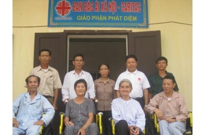 Ngày 14-15/7/2013 vừa qua, cha Antôn Nguyễn Tâm Tư - Giám đốc Caritas giáo phận cùng với các Tình nguyện viên đã tổ chức trao tặng 30 xe lăn cho người bại liệt.