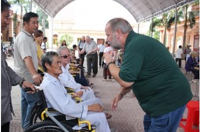Ông Troy Allan Chesnut (trái) và Ông Jeffrey Jay Robertson thăm hỏi người nhận xe lắc