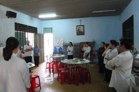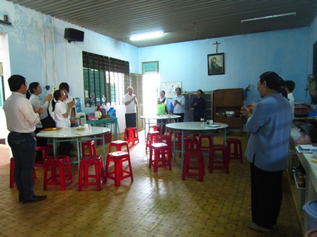 Sau khi thăm viếng, chia sẻ với các bệnh nhân, đoàn trở lại khu nhà cộng đoàn Mai Linh để dùng cơm trưa do các nữ tu đảm trách, thật đơn sơ, giản dị nhưng ắp đầy lòng quý mến và trân trọng. Những lời nói vui đùa, những câu chuyện chia sẻ về công việc chăm sóc người bệnh, mặc dù rất khiêm tốn nhưng chúng tôi vẫn cảm nhận được sự hy sinh thầm lặng của các chị dành cho người bệnh thật lớn lao và đáng khâm phục.