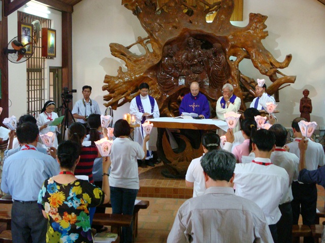 Trong bầu khí trang nghiêm, sốt sắng của thánh lễ tạ ơn, các tham dự viên đã cùng nhau thắp lên ngọn nến sáng từ Đức Kitô biểu trưng cho tình yêu để nói lên niềm khát vọng và quyết tâm của mình, dám dấn thân và phục vụ cho những anh chị em bị nhiễm HIV/AIDS.