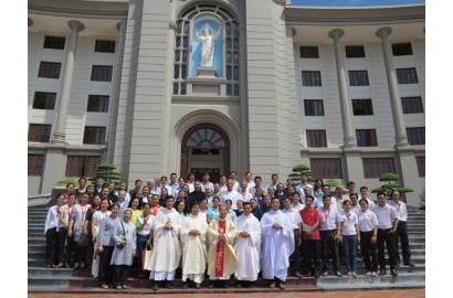 Sau thánh lễ, Sr. Maria Martha Trần Thị Mộng Thu, phụ trách ban HIV/AIDS, đã đại diện cho ban tổ chức và các TDV cám ơn Đức Cha Phêrô cùng quý Cha trong Giáo phận Thái Bình đã tạo điều kiện thuận lợi để Caritas Việt Nam tổ chức khóa tập huấn. Về với Thái Bình mọi người cảm thấy bầu khí thân thương, gần gũi như trong một mái gia đình đúng với khẩu hiệu đã được treo cao ở trung tâm tòa nhà “Chúng ta là một gia đình”. Sau đó, mọi người cùng chụp hình lưu niệm chung với nhau trước tòa nhà của Giám Mục.